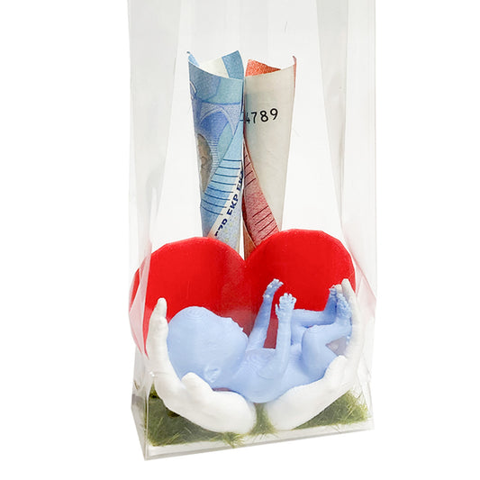 UitverkochtGeboortegeld - Baby op handen gedragen met hart